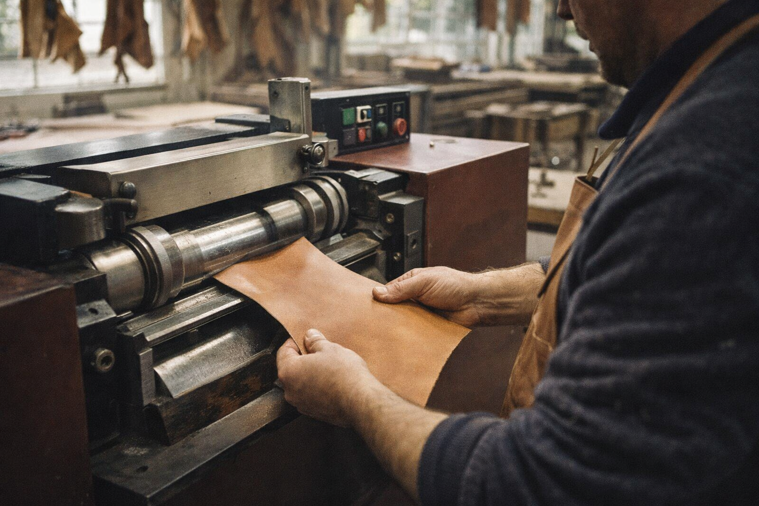 Une peau de bovin adulte peut atteindre plusieurs millimètres d'épaisseur après le tannage. Or, la maroquinerie exige des cuirs bien plus fins.